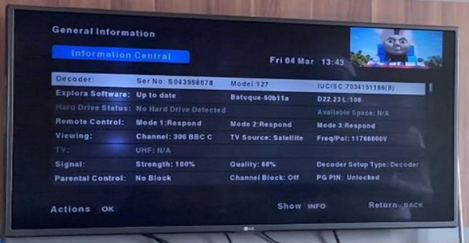 - Check Tuner 1 and Tuner 2, if the signal is low the Customer might need to contact an Installer to review the installation.