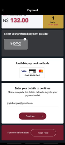 - Input account details and select Continue to pay