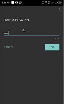 - Input M-PESA pin and click OK