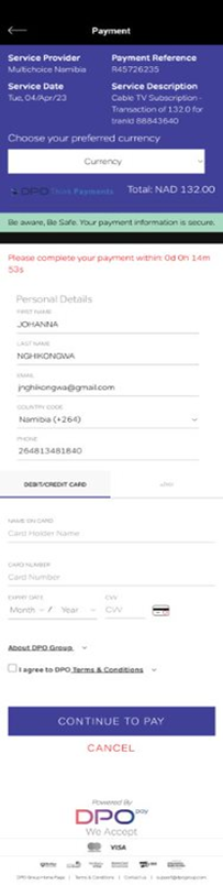 - Select your Payment Method and Enter requested details to continue
