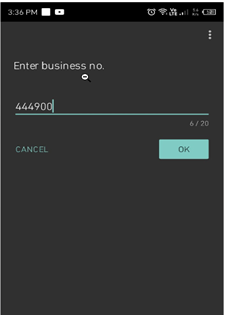 - Input business number and click OK