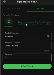 - Select and click on selected payment provider (e.g., M-PESA)